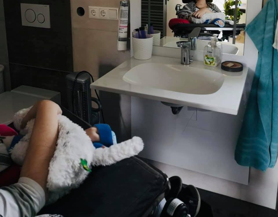 Große Freude über den neuen Waschtisch!
